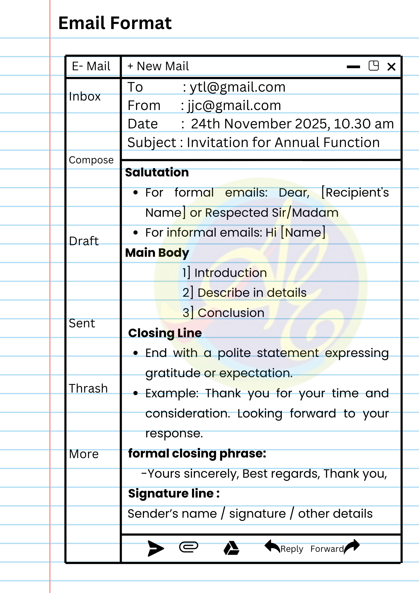 4. Write a proper subject line that summarizes the purpose of the email (e.g., “Request for Leave” or “Invitation for Annual Event”).