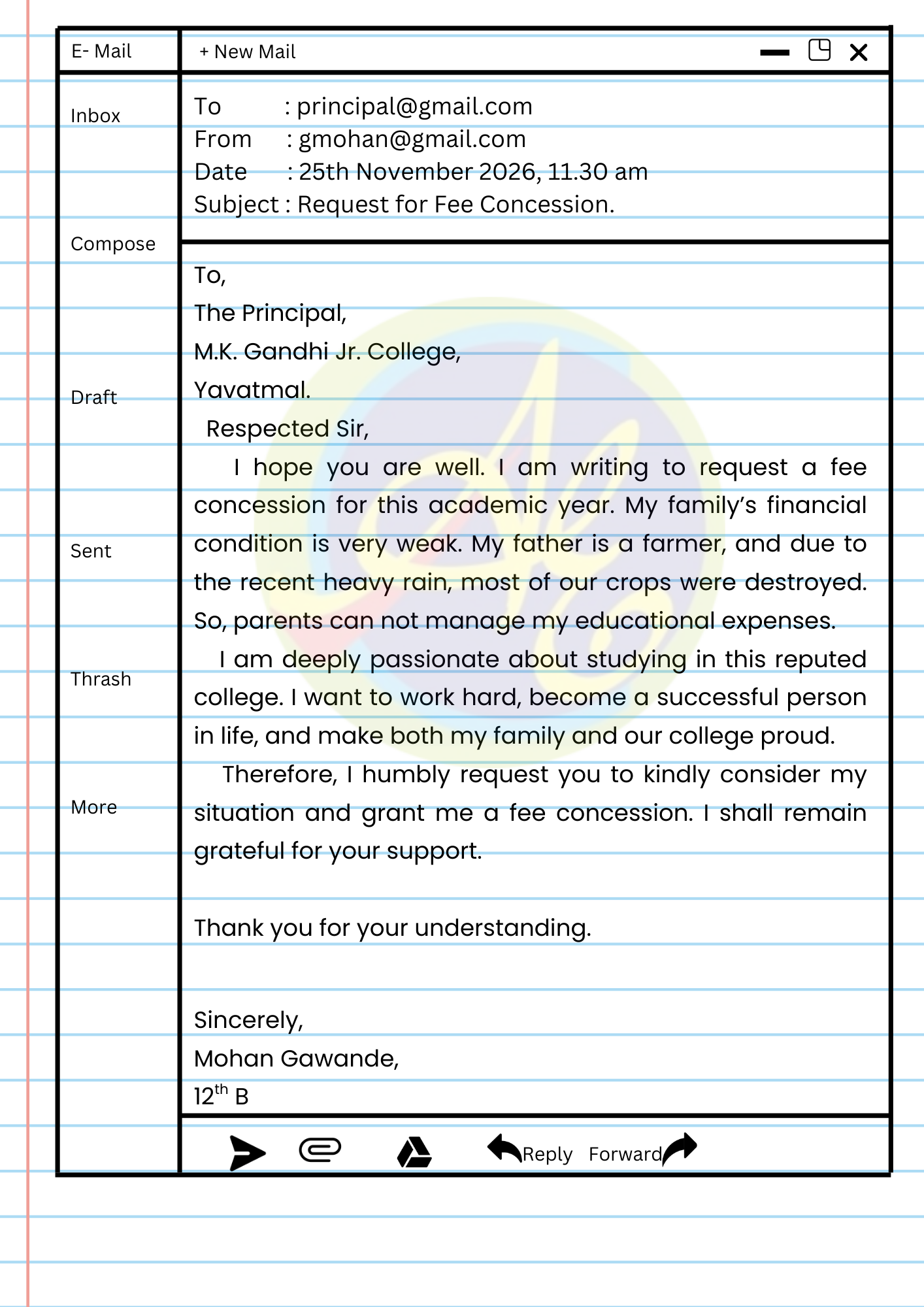 6] Draft an E-mail in a proper format to your Principal for Fee Concession.   (in about100-150 words)