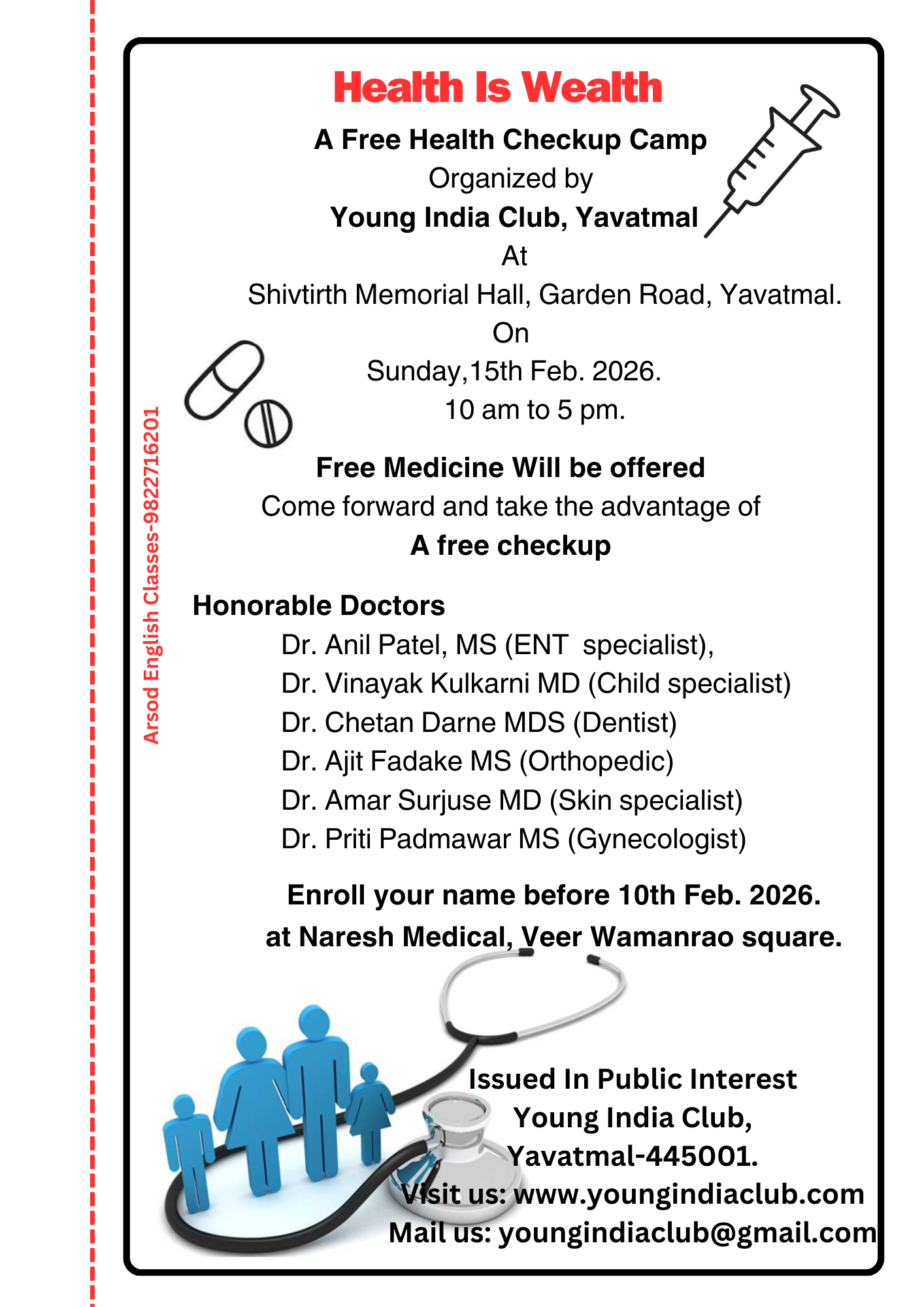 11] You are a member of young India club. You have arranged a free health checkup camp. Prepare a poster.